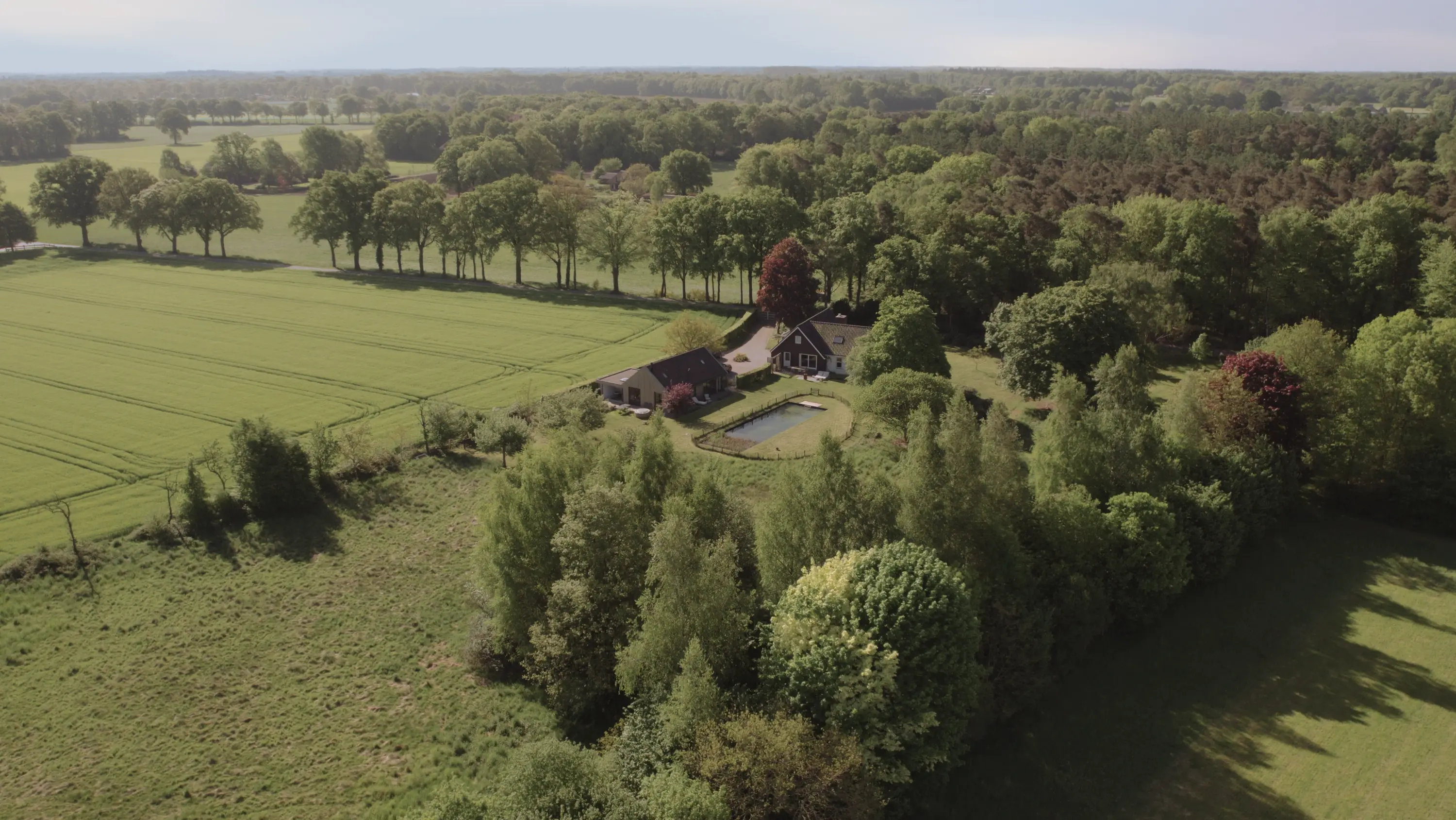 De tuin is een waar landgoed: een natuurlijke zwemvijver met zelfreinigend systeem, volwassen bomen, een kas voor je eigen moestuin en volop ruimte voor kinderen om te spelen. Of je nu wilt ontspannen op de veranda, een duik neemt in het zwembad, of samenkomt met vrienden en familie op het terras – hier beleef je het buitenleven in optima forma.