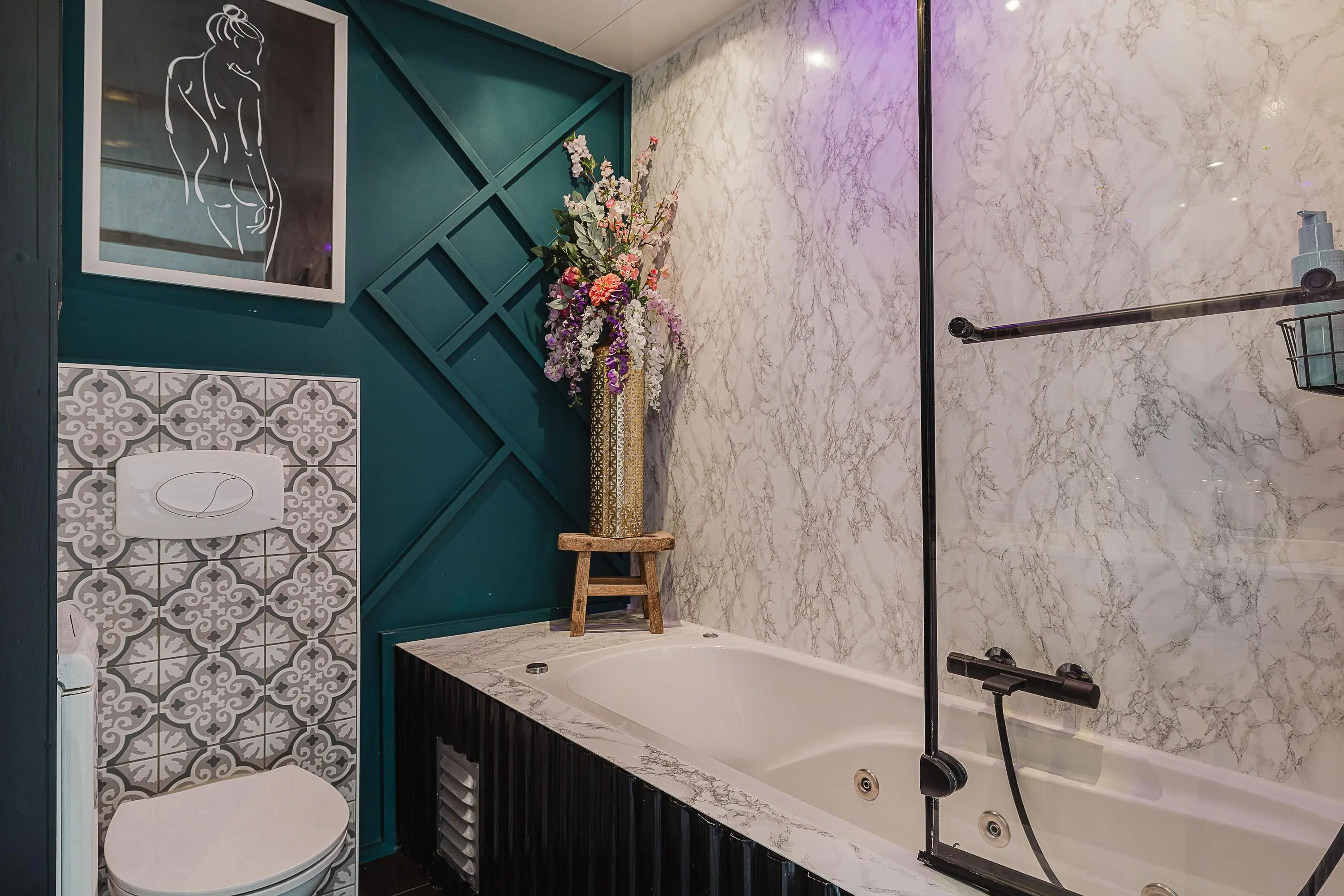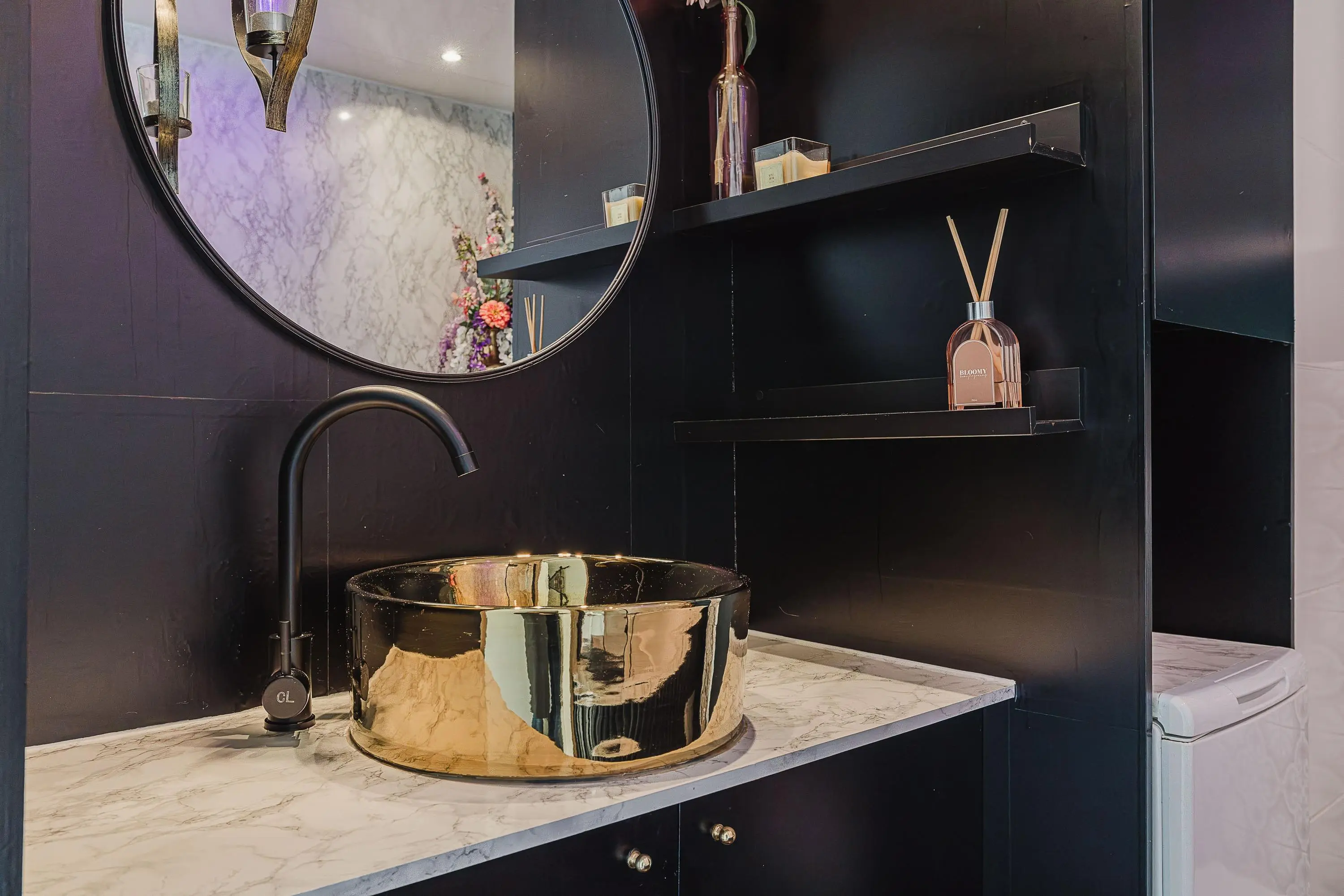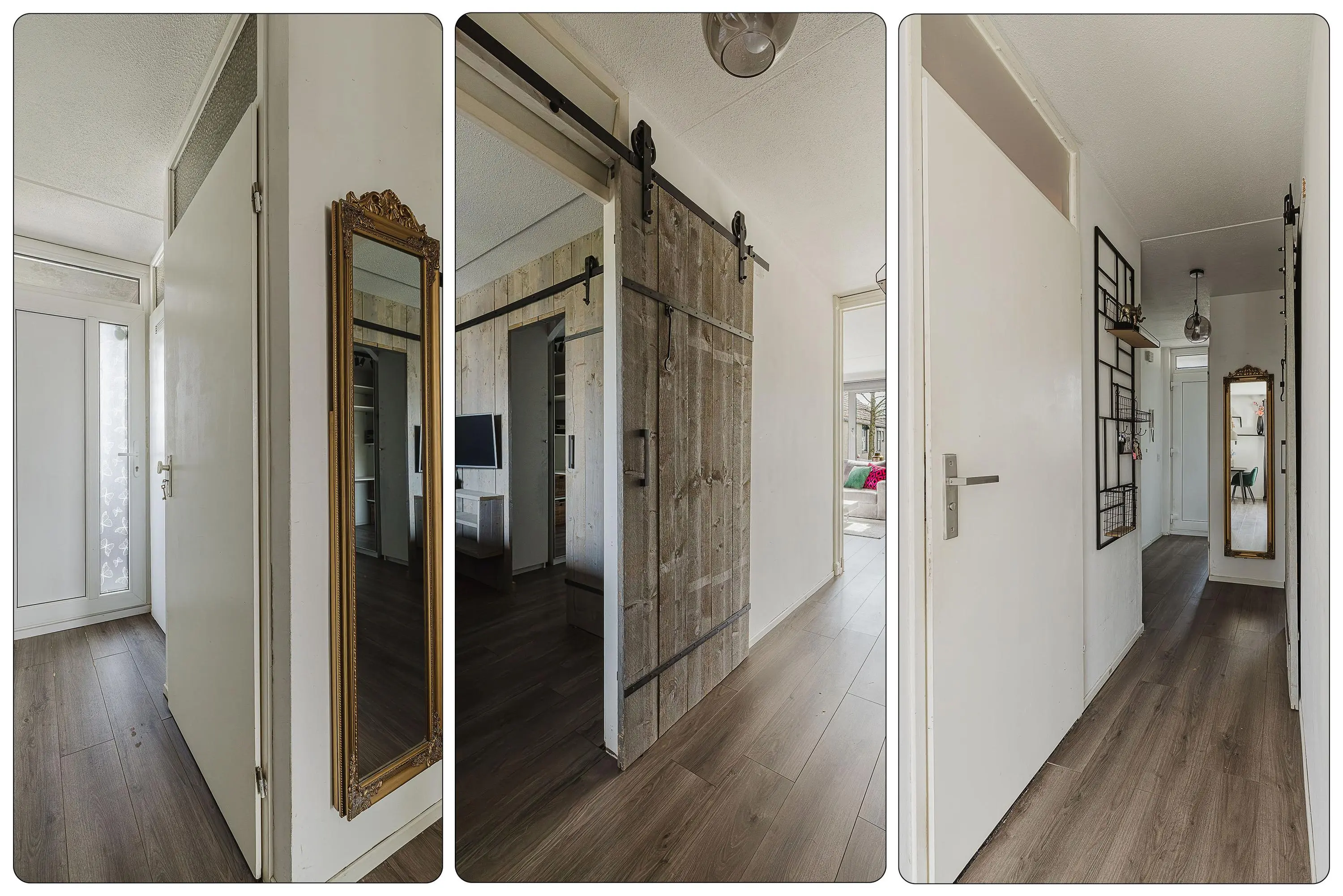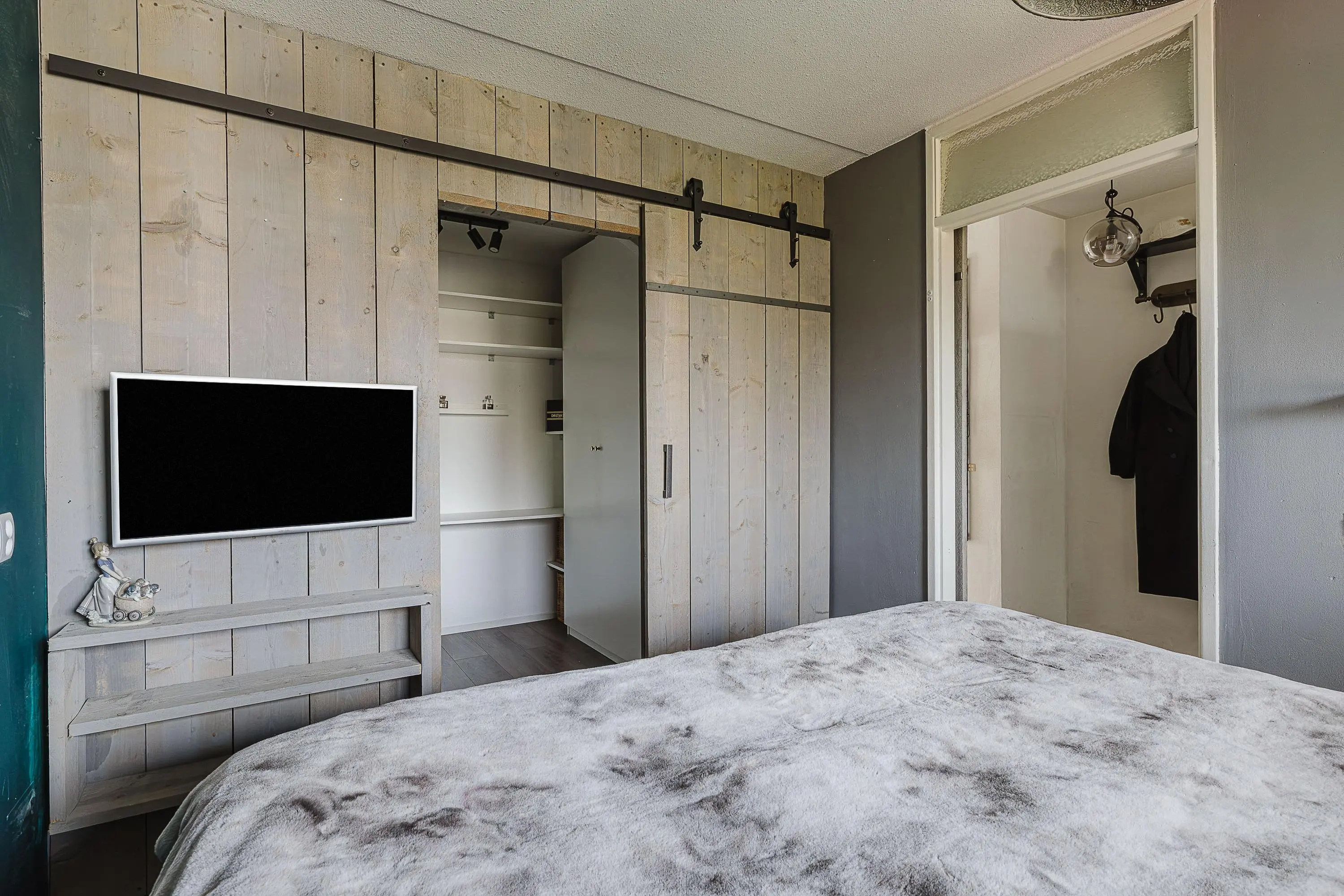 Via de afgesloten galerij kom je bij het appartement op de eerste verdieping. In de hal bevinden zich de meterkast en een bergkast. De slaapkamer is v.v. een ruime inloopkast met een bureau. De badkamer is v.v. een bubbelbad met hand- en regendouche, hangend closet, wastafelmeubel en wasmachine-aansluiting. De woonkamer en open keuken hebben door de grote raampartijen een weldadige lichtinval. De keuken is uitgerust met vaatwasser (2023), inductie-kookplaat (2022), koel-vriescombinatie, oven en een enkele spoelbak met rvs kraan.