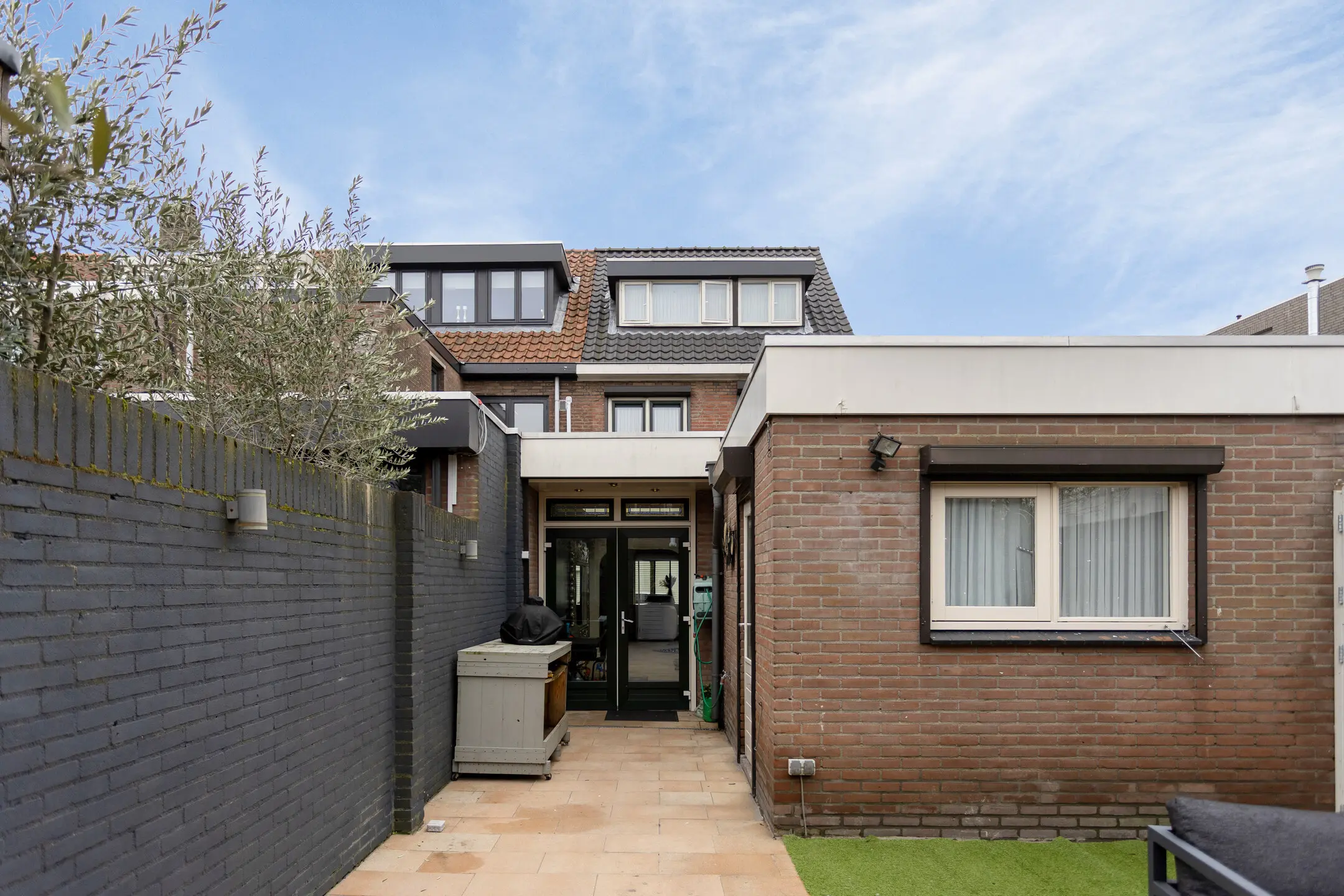 De achtertuin is bijna volledig bestraat en daardoor onderhoudsvriendelijk. Er is volop ruimte voor een groot loungeset, zodat u heerlijk kunt ontspannen of gasten kunt ontvangen. De kleine overkapping aan de achterzijde maakt het mogelijk om ook bij minder weer buiten te zitten. Via de tuin bereikt u de berging met extra brede toegang – ideaal voor bijvoorbeeld een motor. Uiteraard beschikt de woning over een eigen achterom.