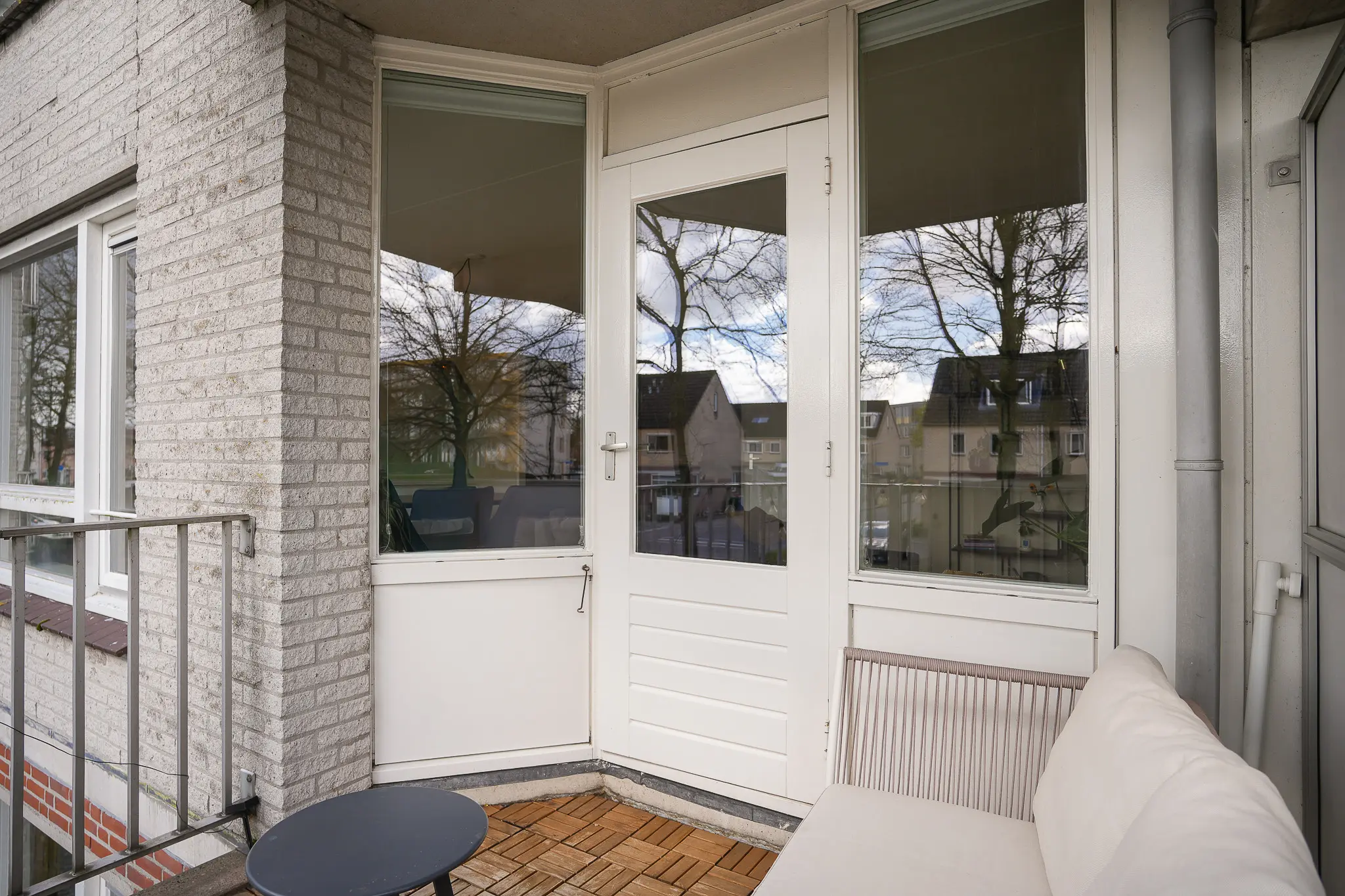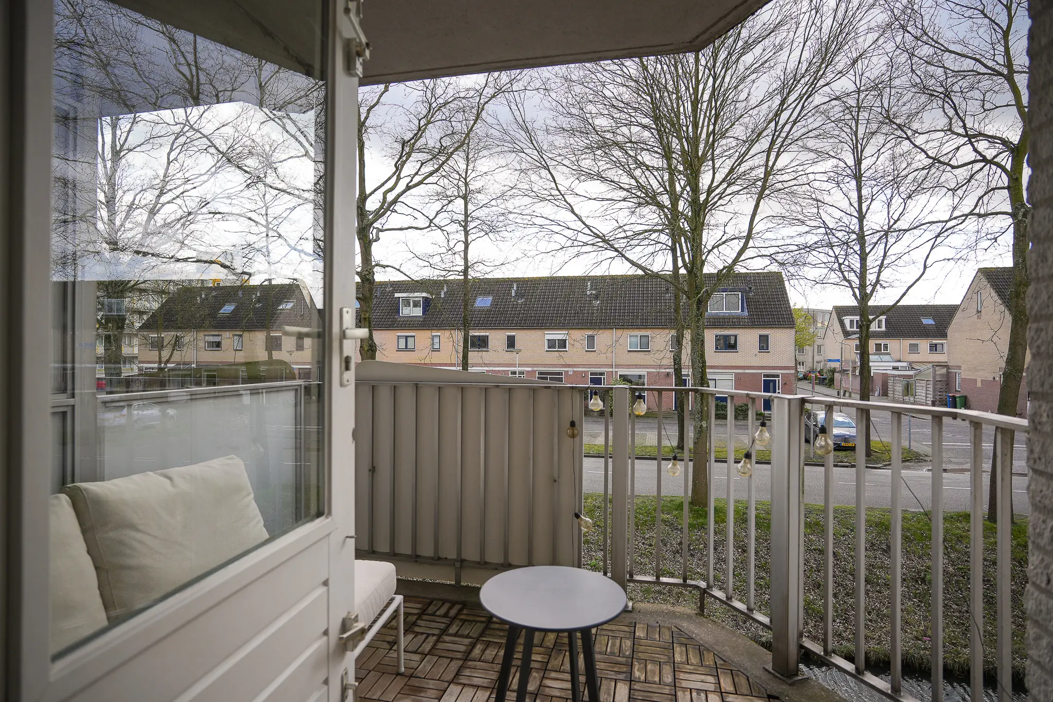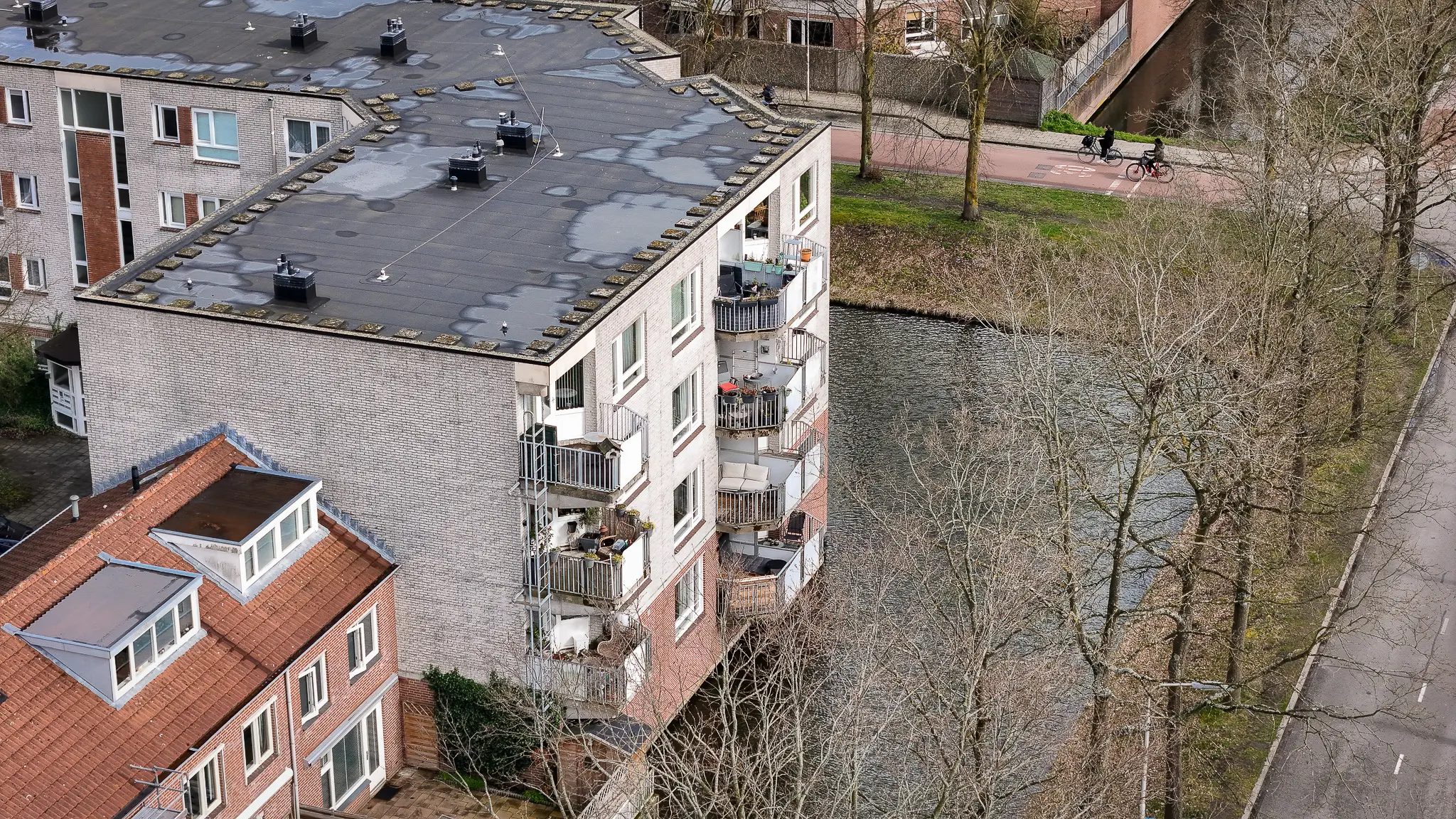 Via de woonkamer loop je zo het fijne balkon op, gelegen op het zuiden. Hier zit je van ’s ochtends tot laat in de middag in de zon, met uitzicht op het water: een heerlijke plek voor de eerste koffie, een borrel of een lange zomerse avond.