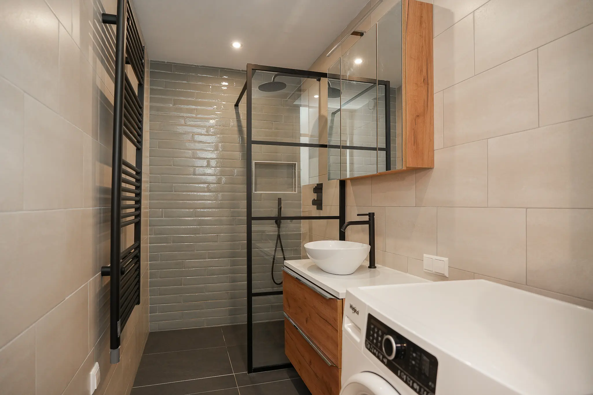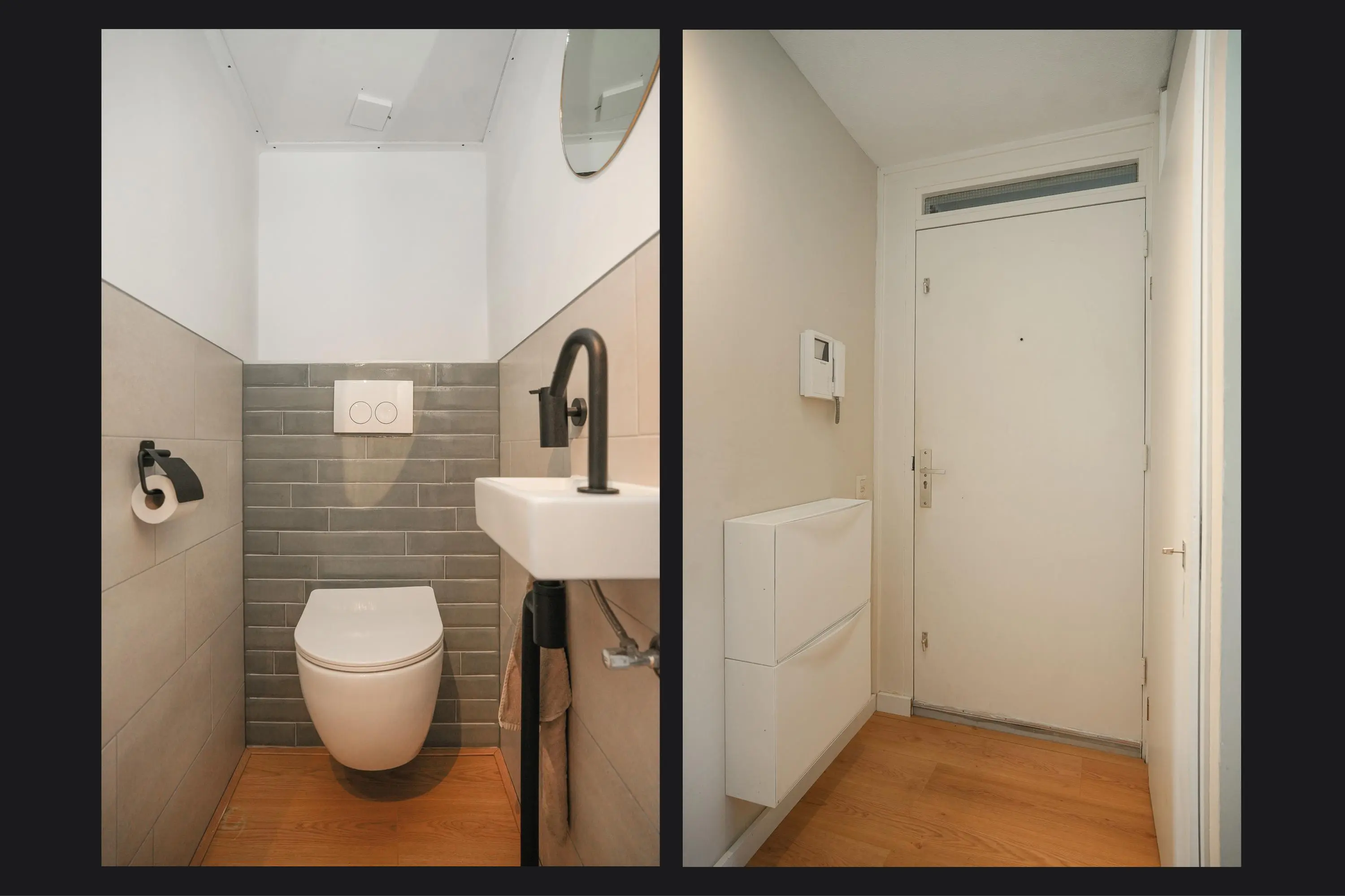 Centraal in de woning ligt de badkamer, die eveneens in 2022 is vernieuwd en modern is afgewerkt met een inloopdouche, wastafelmeubel, wasmachineaansluiting en designradiator. Naast de badkamer vind je het separate toilet, wel zo praktisch.