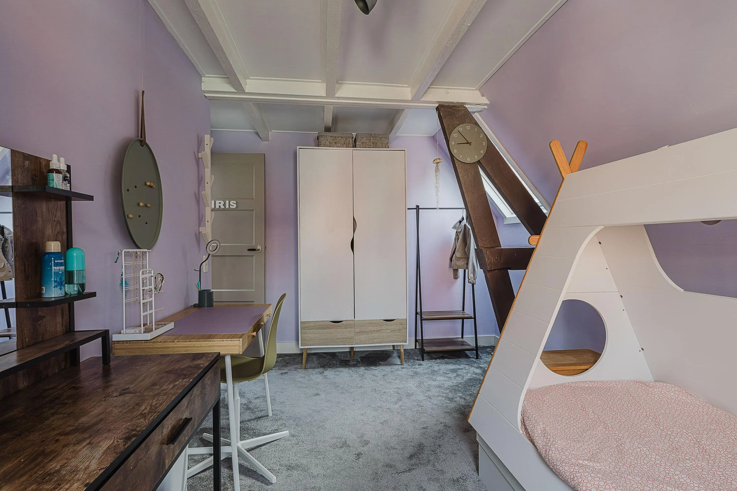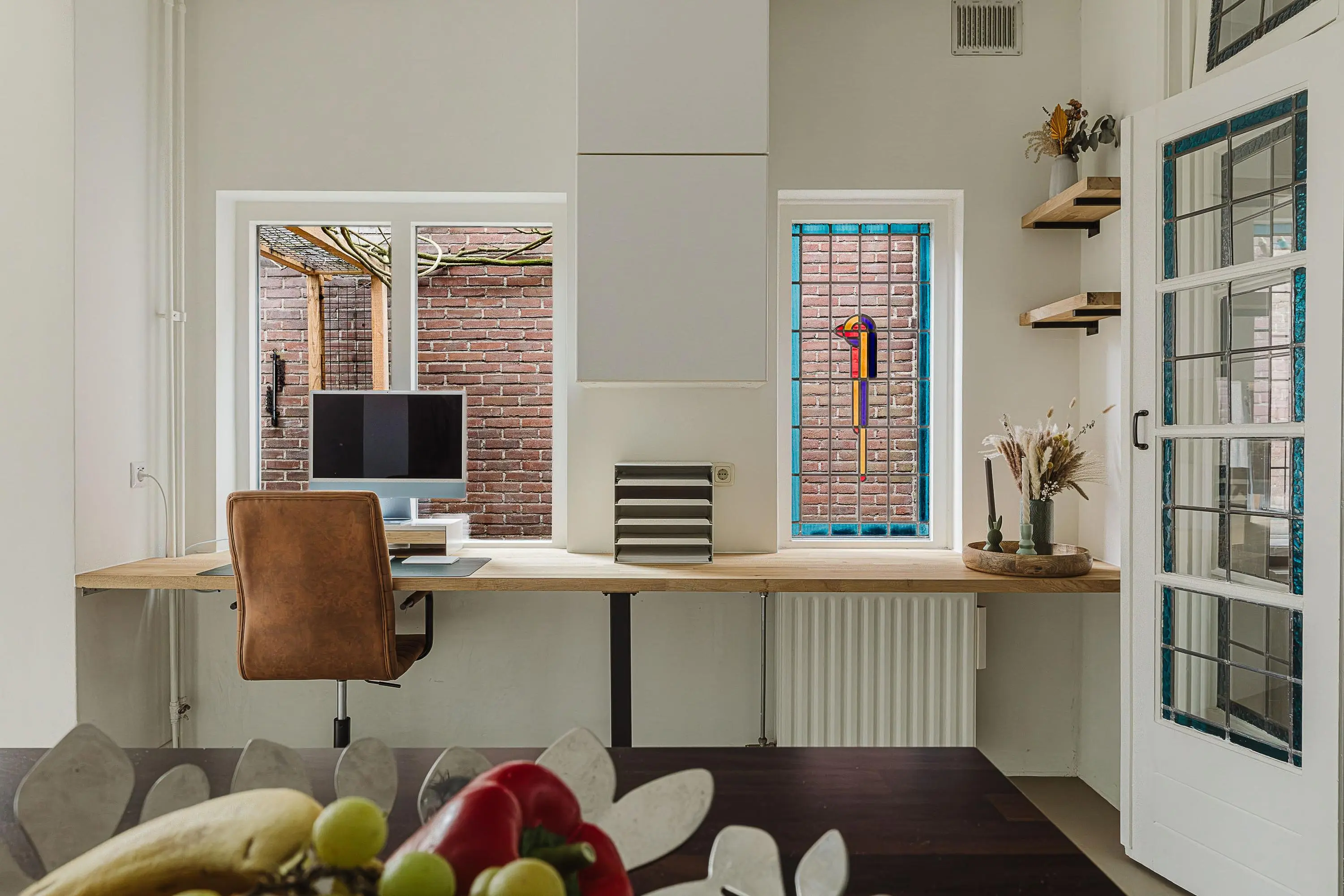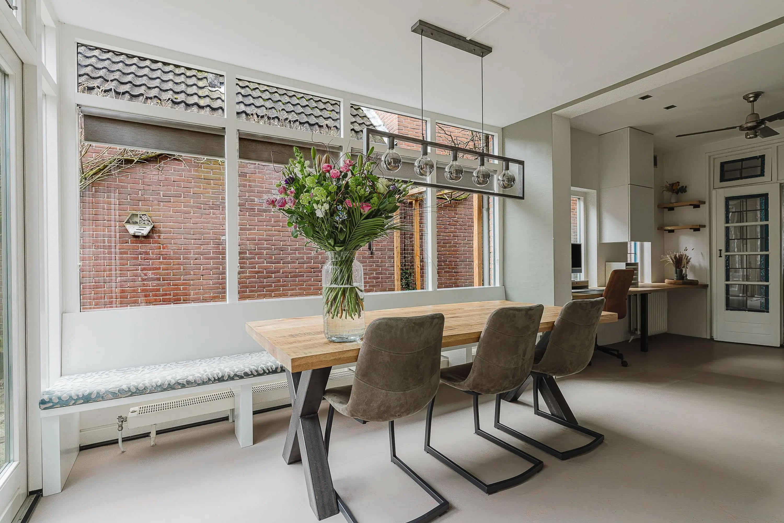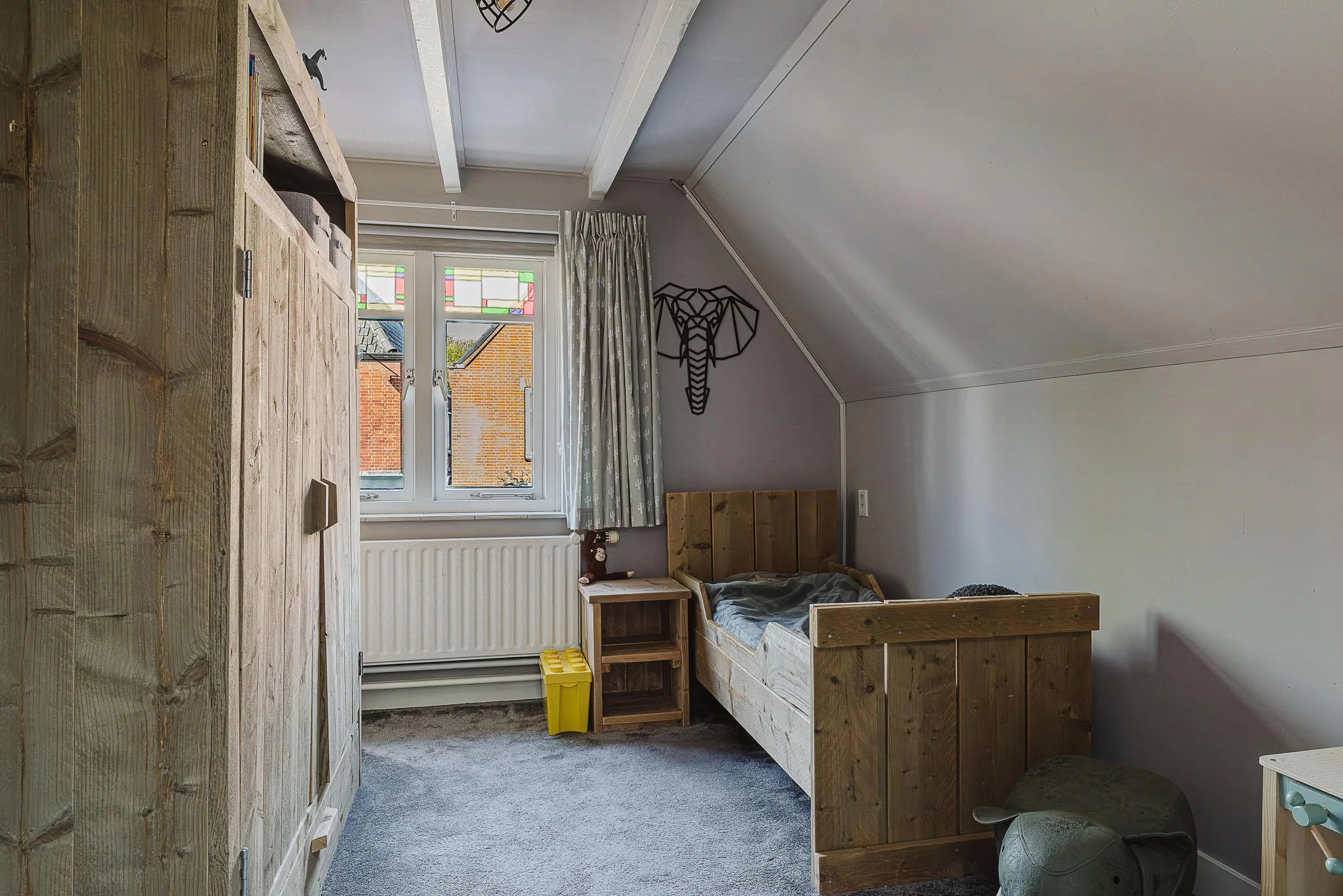 Binnen tref je een sfeervolle leefruimte met veel natuurlijk licht, glas-in-loodramen en een ruime woonkeuken die alle mogelijkheden biedt voor het bereiden van heerlijke maaltijden. Ook de tuin blijft niet onopgemerkt: een perfecte plek om te ontspannen en te genieten van de rust.
