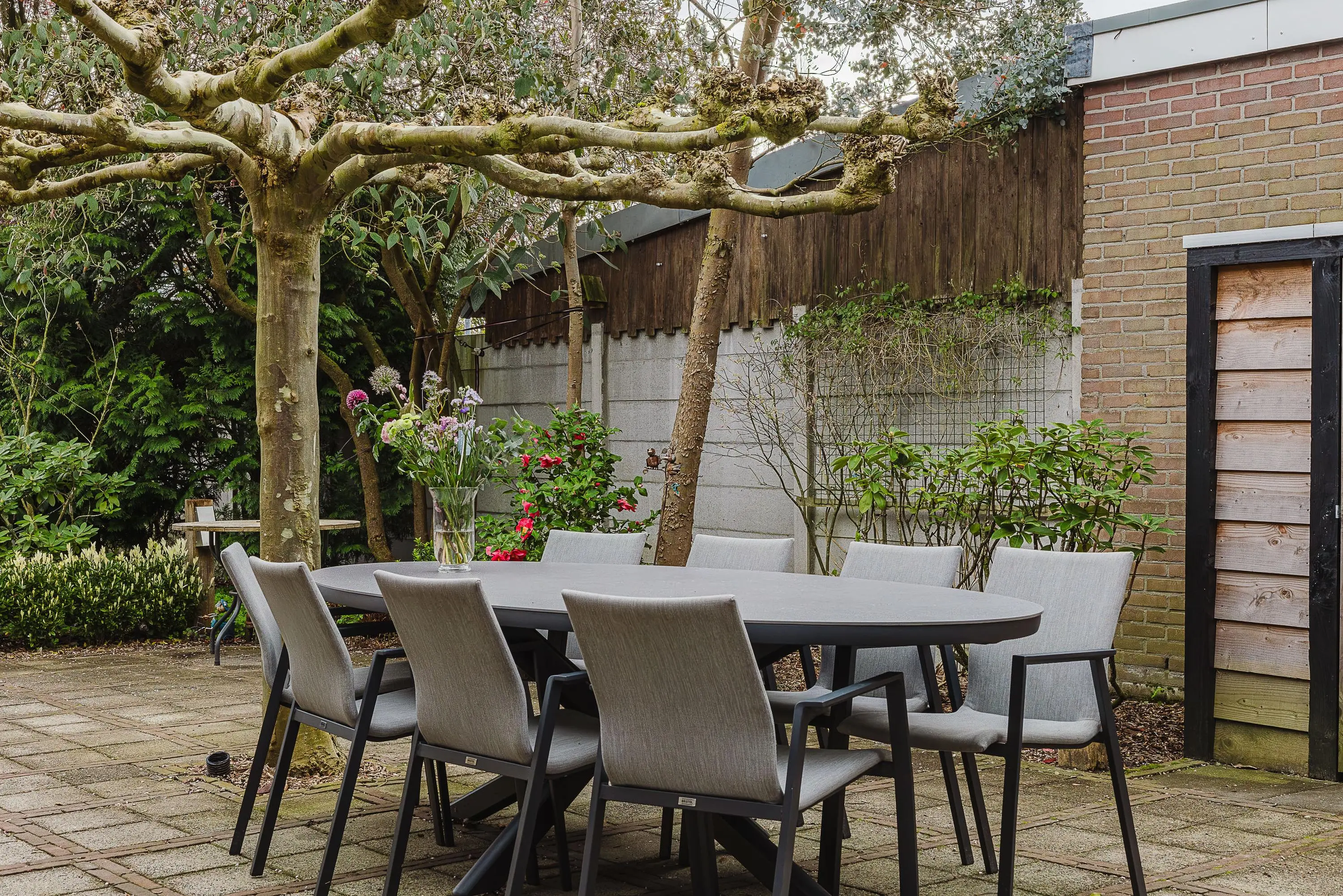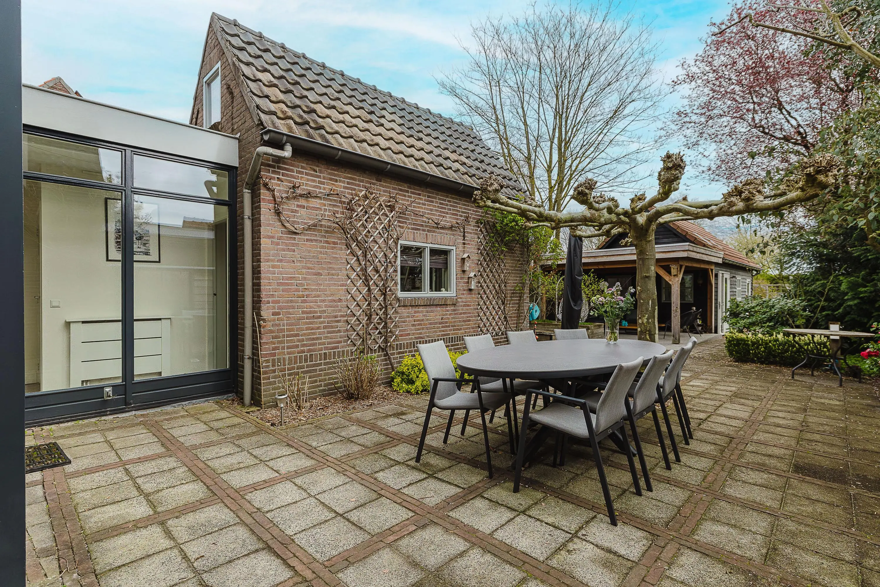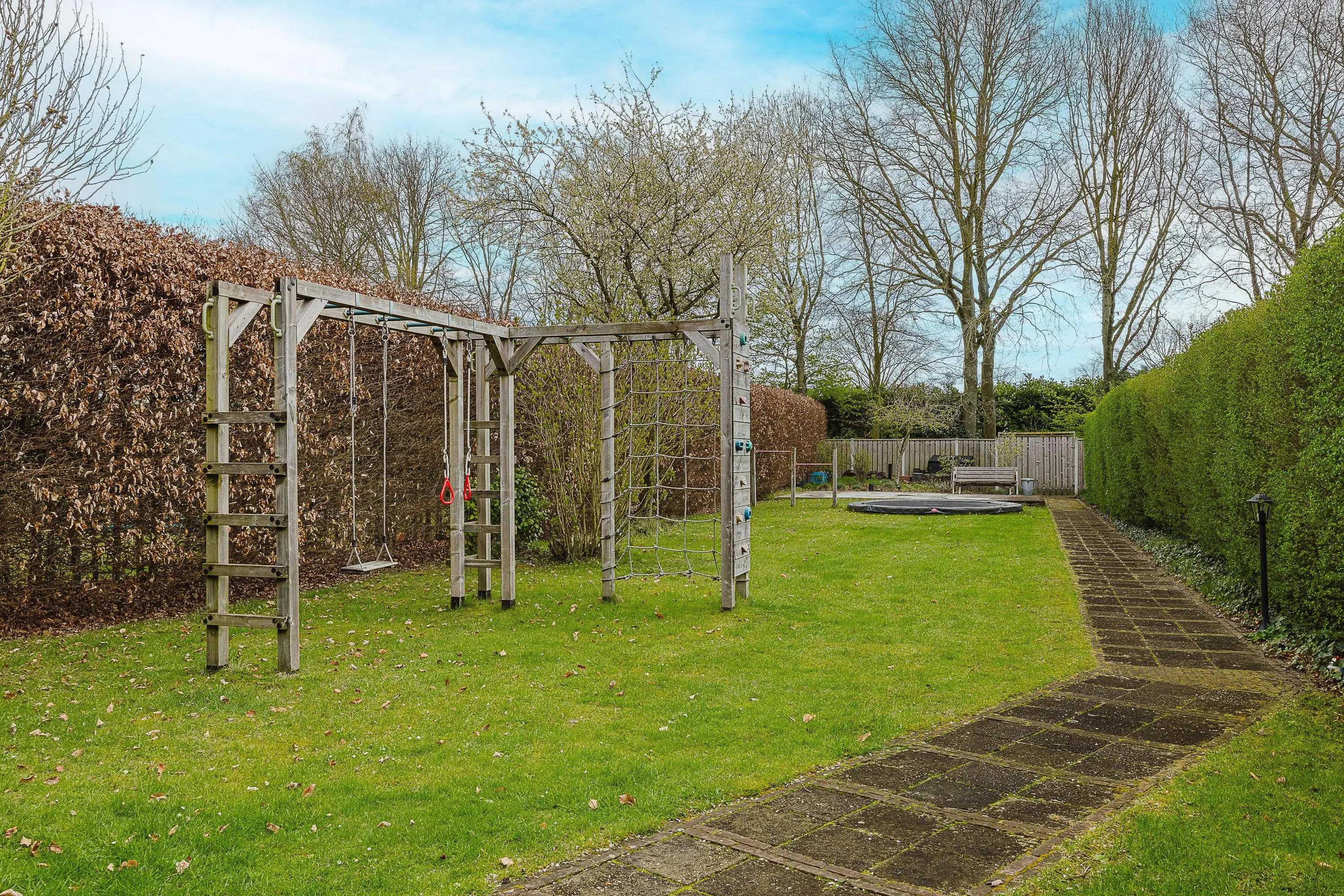 Via de openslaande deuren in de eetkamer en speelkamer betreed je de zeer diepe tuin van circa 650 m². De tuin beschikt over een overkapping bij de grote vrijstaande berging, die is opgedeeld in twee delen en voorzien is van elektra en een bergvliering. In de tuin bevinden zich meerdere grondwatertappunten. Zowel aan de voor- als achterzijde van de tuin kun je het perceel verlaten via een poort.